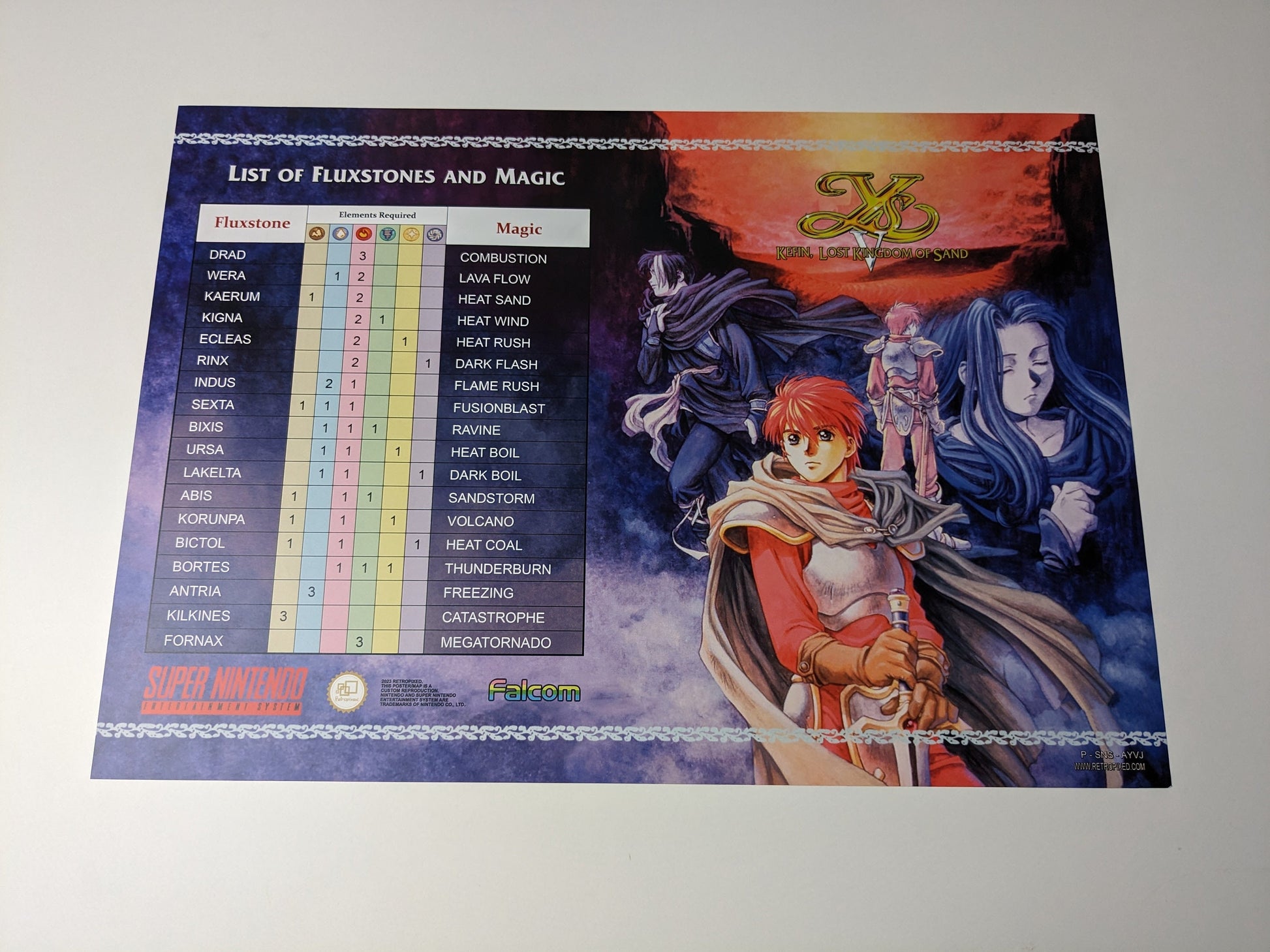 YS V Kefin, LOST KINGDOM OF SAND - Super Nintendo Poster/Map